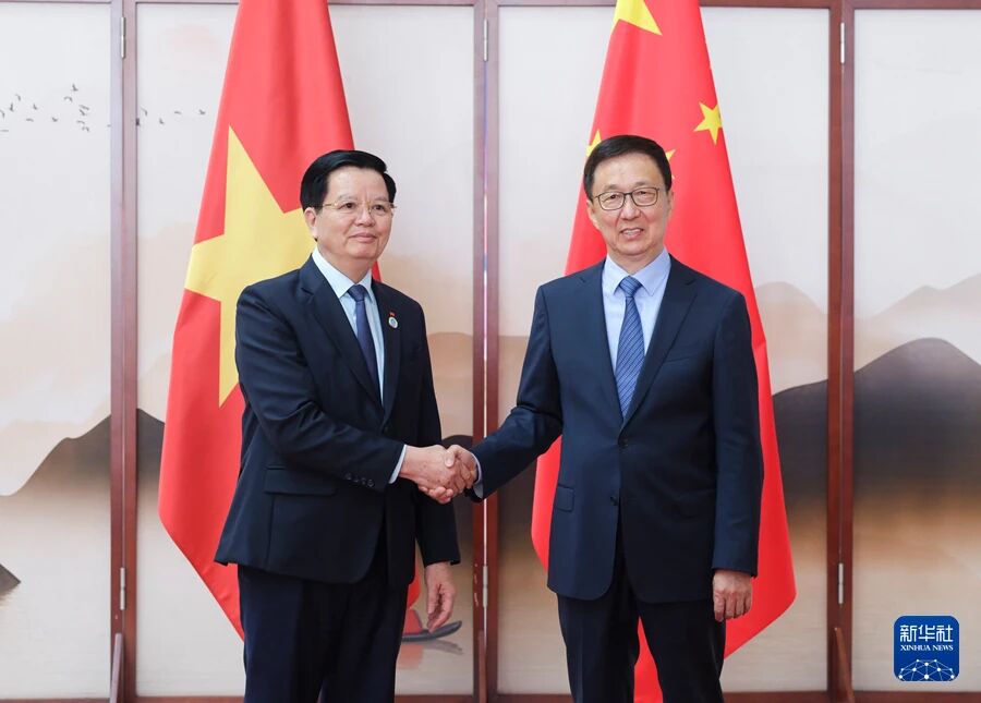 会见梅文政时,韩正表示,中越两党两国高层保持频密交往,就推进全面战略合作达成重要共识,为新形势下中越命运共同体建设指明方向。今年是两国建交75周年暨“人文交流年”。中方愿同越方一道,以两党两国领导人战略共识为指引,赓续传统友谊,深化互利合作,加快构建具有战略意义的中越命运共同体,为各自社会主义现代化建设注入强劲动力。