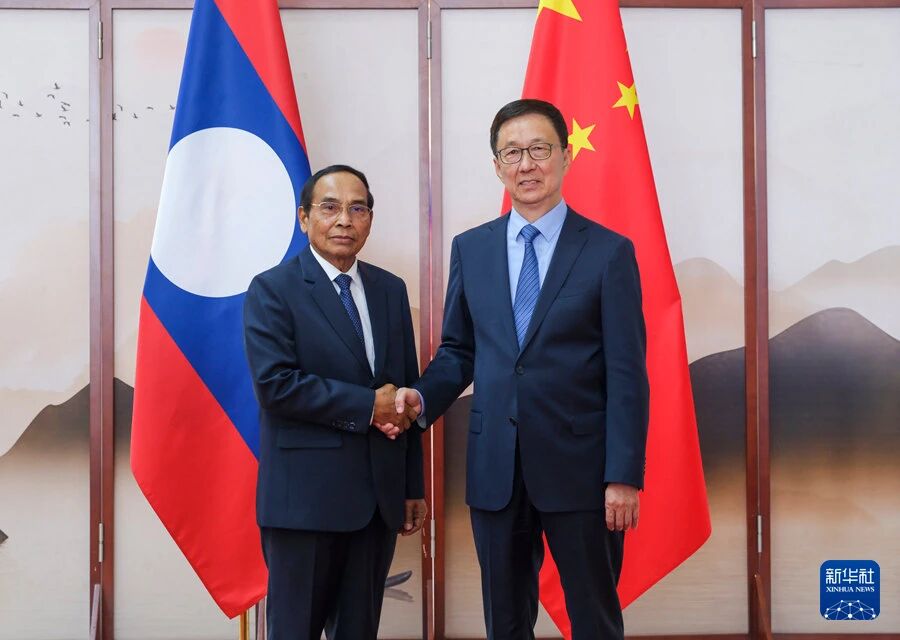 会见本通时,韩正表示,在两党两国最高领导人战略引领下,中老命运共同体建设扎实向前推进。不久前,习近平总书记、国家主席同通伦总书记、国家主席举行亲切会晤,为深化新时期中老全面战略合作擘画蓝图。中方愿同老方共同落实高层重要共识,深化中老命运共同体建设,办好明年建交65周年庆祝活动,让两国传统友好更加深入人心。