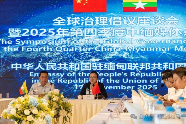 2025年11月17日,中国驻缅甸使馆在仰光举办全球治理倡议座谈会暨2025年度第四季度中缅媒体茶话会,中国驻缅甸大使马珈、缅宣传部长貌貌翁和中缅30余家媒体、智库、学者代表约160人出席,郑志宏公参主持。