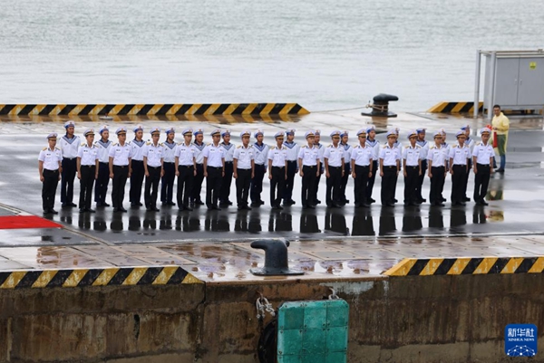 当地时间凌晨,中国海军长白山舰、郑和舰和“向前进1号”船抵达预定海域,与越南海军“丁先皇”号护卫舰汇合,组成编队驶向金兰港,10时许靠泊金兰港码头。中国驻越南大使馆工作人员、当地华侨华人代表、越南海军官兵等冒雨到码头迎接。随舰实习出访的海军工程大学、海军航空大学学员在甲板上分区列队,向欢迎人群致意。