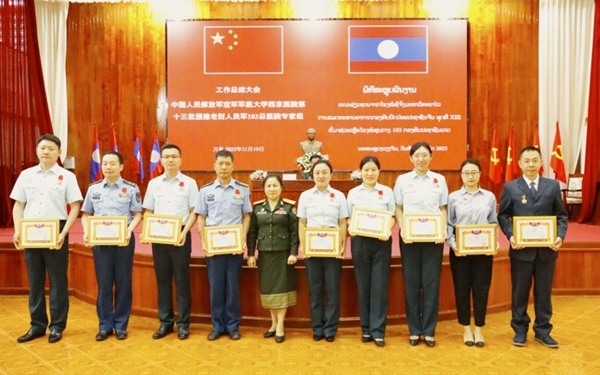 波星在致辞中表示,中国医疗队与103医院精诚合作,在医疗保障、临床带教和护理培训等领域取得了丰硕成果,成功完成了老挝首例脑深部电极植入术等高难度手术,填补了多项技术空白,显著提升了医院的竞争力和影响力。第十三批援老医疗队秉持优良作风,为推动老中命运共同体建设作出了突出贡献。老中两国、两军将继续携手前行,构筑更健康、更美好的明天。