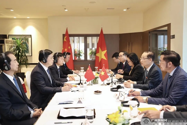 在越期间,代表团会见了越南工贸部部长阮鸿延、建设部部长陈红明以及谅山省委书记黄国庆、人委会主席阮景全,海防市人委会主席黎玉州,太原省人委会主席王国俊,就深化人工智能、经贸投资、文化旅游、教育培训、科技创新等合作交换意见。大家一致表示,广西在中越关系和友好交往中具有特殊重要地位,在双方贸易、互联互通、产业链供应链合作等方面显示出巨大发展潜力,深化桂越合作前景光明、未来可期。将在两党两国领导人战略引领下,落实好两国关于共建“一带一路”与“两廊一圈”框架对接的合作规划,加强产业链供应链合作,拓展人工智能、智慧口岸、教育培训、文化旅游等领域交流合作,推动区域繁荣发展、更好造福两地人民。