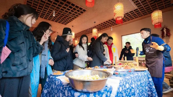 感知行中,留学生们还近距离观摩了涪陵非遗榨菜的制作技艺,从选材、腌制到成型,这项传承百年的手艺体现了中国饮食文化中“入味入心”的匠心;体验了武陵山养生宴和“渝味360碗”头碗菜“涪陵榨菜鱼”。这道菜以“药食同源”为理念,将山野本草融入菜肴,生动诠释了川渝美食的鲜活气质。来自越南的“重庆留学生金牌文旅推介官”阮宝鸿说“品尝涪陵榨菜感觉与千年前古代人进行时空对话,药食同源的理念转变了我对食物的理解,这场体验活动让我感受到食物不仅是一餐饭,更是一堂生动的饮食文化课。”
