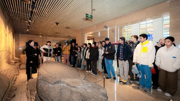 在“世界首座非潜水可到达的水下遗址博物馆”白鹤梁水下博物馆,留学生们透过观察窗,清晰见到了唐代以来镌刻于石梁上的水文题刻。古人以石刻记录长江水文,今人以科技守护文明遗产,这种跨越千年的传承令他们深深触动。来自越南的“重庆留学生金牌文旅推介官”戴氏菲绒说“长江不仅是一条江,也是一部流淌的文明史。这里的历史没有语言的隔阂,只有跨越时空的精神共鸣。”