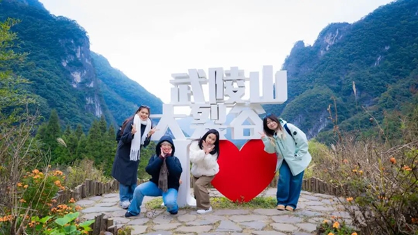 在被誉为“地球上最古老的裂痕”的武陵山大裂谷,面对长约1500米的青天峡地缝奇观,大自然的雄浑力量令他们驻足赞叹;在峡谷深处,AI智能咖啡吧内机械臂精准冲泡咖啡的场景,让他们感慨科技与自然的巧妙交融。来自越南的“重庆留学生金牌文旅推介官”黎氏翘贞惊奇地表示“自然与科技在这里和谐交融,让我们看到了未来旅游的更多可能,我一定会邀请朋友们前来体验。”