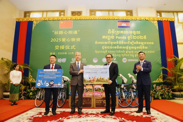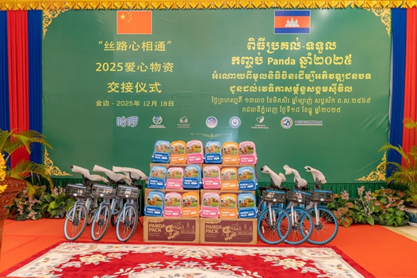 中国乡村发展基金会此次携手阿里巴巴公益、哈啰集团和中远海运慈善基金会,在柬发放2.16万套爱心包裹和2500辆爱心单车,将惠及金边、茶胶、磅通等13个省市。