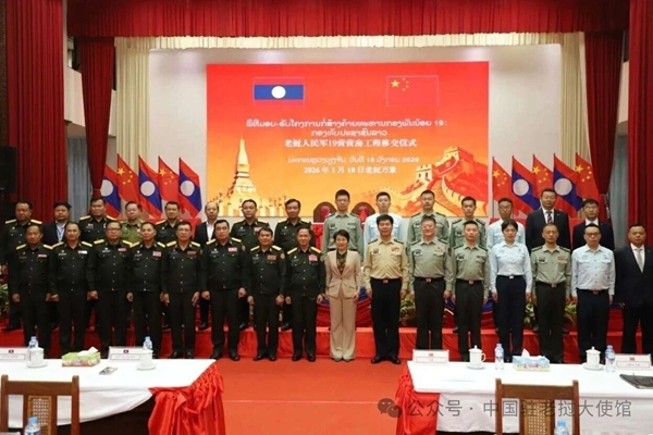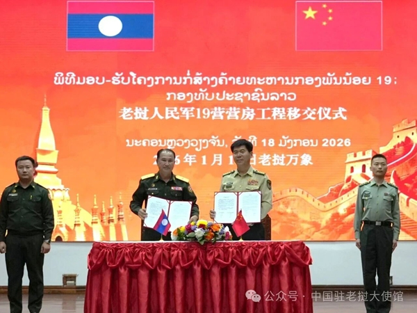 1月18日,中国军队援建老挝人民军丰沙里19营营房工程移交仪式在老挝国防部隆重举行。中国驻老挝大使方虹、老挝国防部长坎良中将出席移交仪式并致辞,中老双方约300人参加仪式。