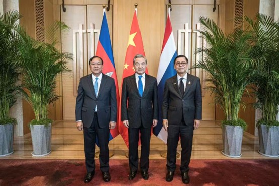 លោក WangYi បានលើកឡើងថា យើងបានរៀបចំកិច្ចសន្ទនាទ្វេភាគីជាច្រើនលើកនៅទីនេះ ជាពិសេសស្ថាប័នការទូតនិងស្ថានប័នយោធាកម្ពុជានិងថៃបានផ្លាស់ប្តូរមតិយោបល់យ៉ាងស៊ីជម្រៅ ដែលសុទ្ធតែបានបង្ហាញពីអាកប្បកិរិយាវិជ្ជមាននិងបើកចំហរ ការប្តេជ្ញាចិត្តក្នុងការបន្ធូរបន្ថយភាពតានតឹង ព្រមទាំងមានឆន្ទៈក្នុងការកែលម្អទំនាក់ទំនងទ្វេភាគីដោយឈរលើមូលដ្ឋាននៃបទឈប់បាញ់។ការពិភាក្សារវាងភាគីទាំងបីប្រកបដោយផលប្រយោជន៍និងមានលក្ខណៈស្ថាបនា ដែលសម្រេចបាននូវគំនិតឯកភាពដ៏សំខាន់៖ទីមួយ គឺសម្លឹងមើលទៅមុខនិងឆ្ពោះទៅមុខជាមួយគ្នា។ទីពីរ បន្តដំណើរទៅមុខជាសន្សឹមៗដោយមិនបង្អាក់ដំណើរ។ទីបី ការស្តារទំនុកចិត្តគ្នាទៅវិញទៅមកគឺជារឿងសំខាន់បំផុត។ប្រទេសចិននឹងធ្វើជាអ្នកជំរុញដល់ការអភិវឌ្ឍទំនាក់ទំនងរវាងកម្ពុជា-ថៃជានិច្ច ចិនរីករាយផ្តល់ជំនួយនិងការគាំទ្រចាំបាច់ទាំងអស់ ហើយរំពឹងទុកនិងជឿជាក់ថា ទំនាក់ទំនងកម្ពុជា-ថៃនឹងវិលត្រឡប់ទៅផ្លូវត្រឹមត្រូវវិញក្នុងពេលឆាប់ៗនេះ។