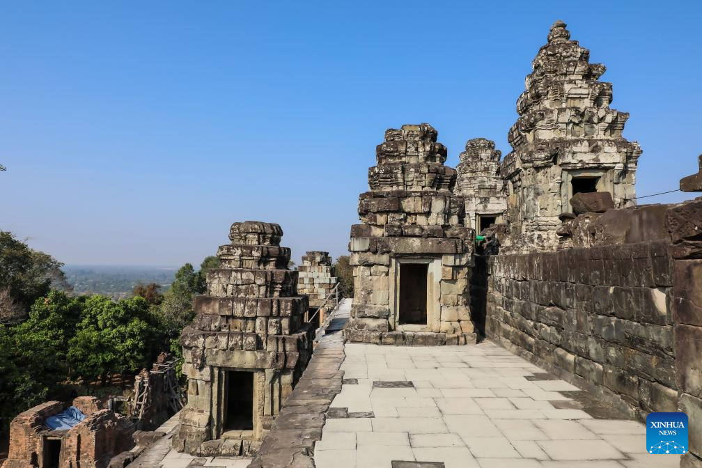 This photo taken on Jan. 13, 2026 shows part of Phnom Bakheng Temple in Siem Reap province, Cambodia. The restoration work on the western part of Phnom Bakheng Temple in Cambodia's renowned Angkor Archaeological Park has been underway, said an APSARA National Authority (ANA) news release on Wednesday. (ANA/Handout via Xinhua)