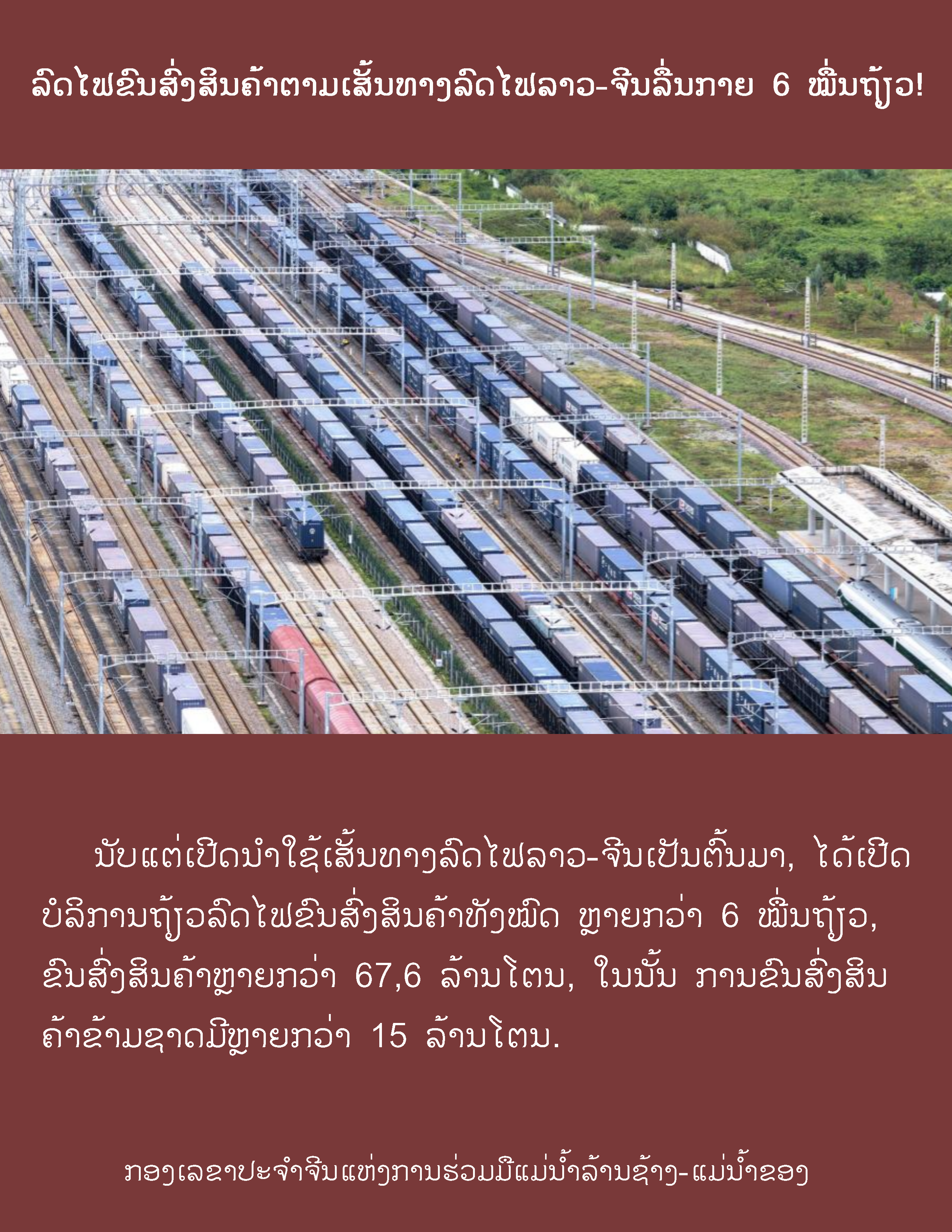 ລົດໄຟຂົນສົ່ງສິນຄ້າຕາມເສັ້ນທາງລົດໄຟລາວ-ຈີນ ລື່ນກາຍ 6 ໝື່ນຖ້ຽວ
