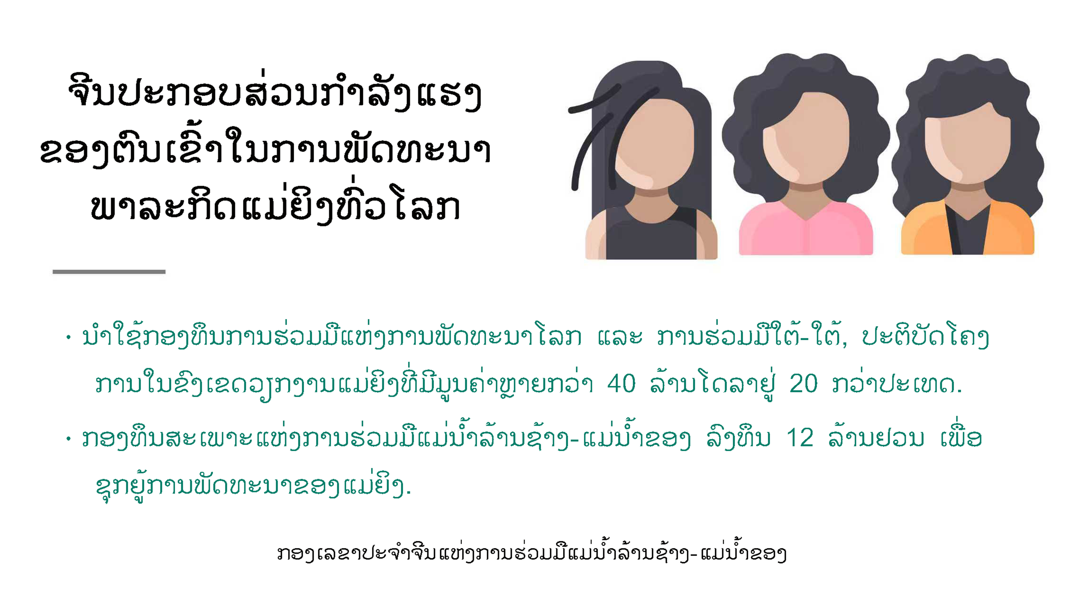 ຈີນປະກອບສ່ວນກຳລັງແຮງຂອງຕົນເຂົ້າໃນການພັດທະນາ ພາລະກິດແມ່ຍິງທົ່ວໂລກ