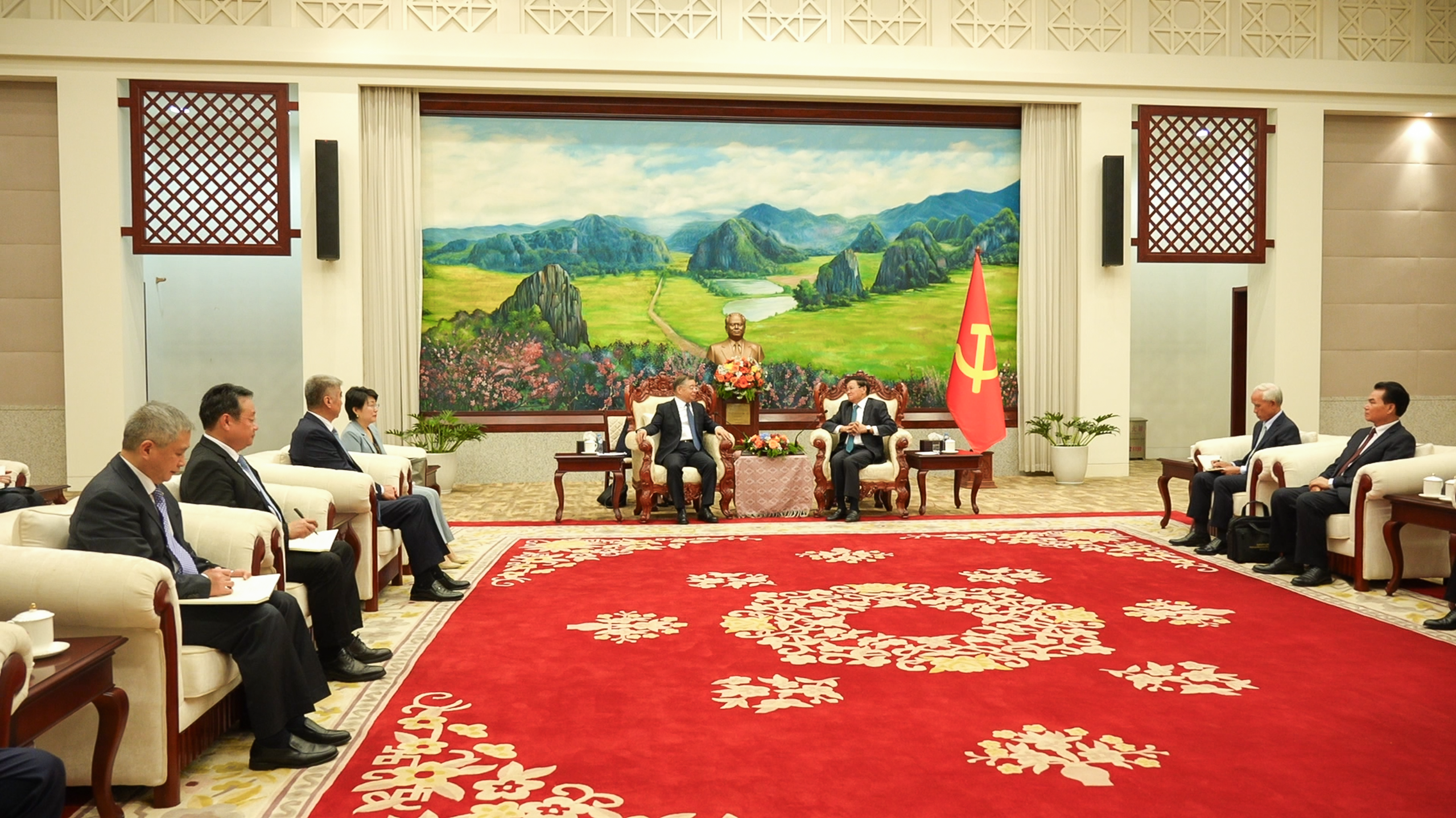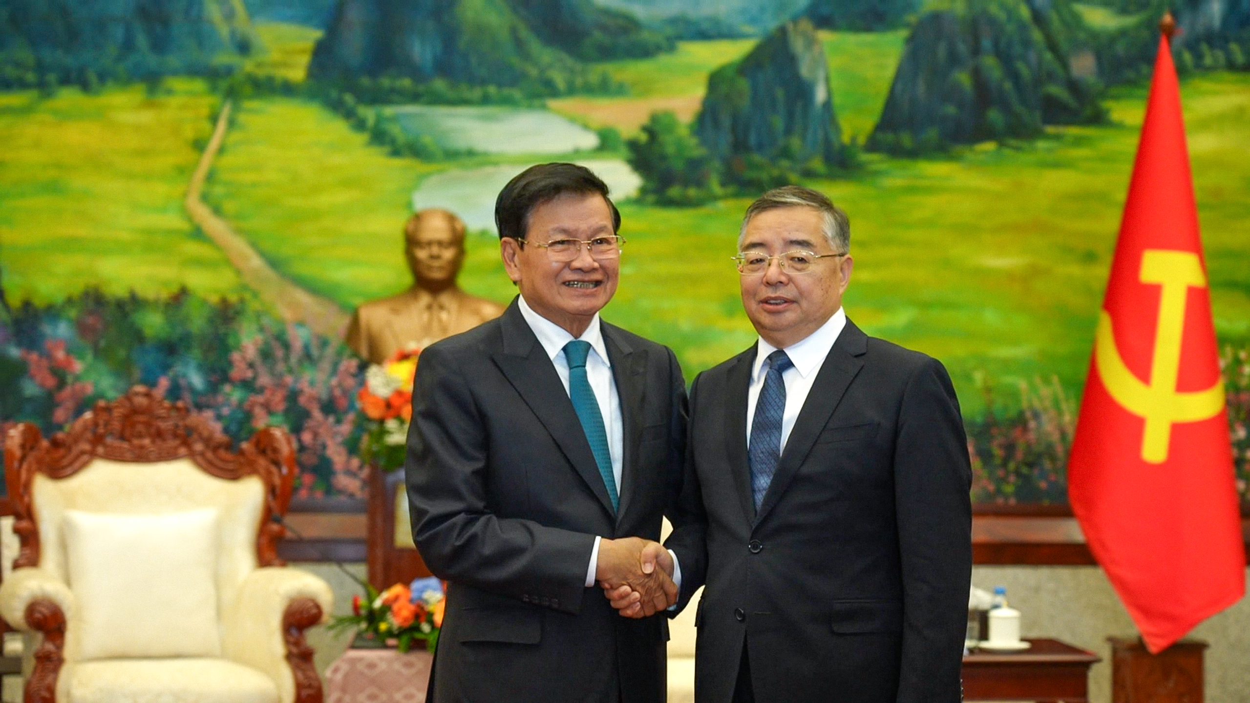 ວັນທີ 11 ພະຈິກ 2025 ທີ່ນະຄອນຫຼວງວຽງຈັນ, ສະຫາຍ ທອງລຸນ ສີສຸລິດ ເລຂາທິການໃຫຍ່ຄະນະບໍລິຫານງານສູນກາງພັກປະຊາຊົນປະຕິວັດລາວ, ປະທານປະເທດແຫ່ງສປປລາວ ໄດ້ໃຫ້ການຕ້ອນຮັບການເຂົ້າຢ້ຽມຂໍ່ານັບຂອງສະຫາຍ ຫຼີຊູ່ເຫຼີຍ ຫົວໜ້າຄະນະໂຄສະນາອົບຮົມສູນກາງພັກຄອມມູນິດຈີນພ້ອມດ້ວຍຄະນະ.