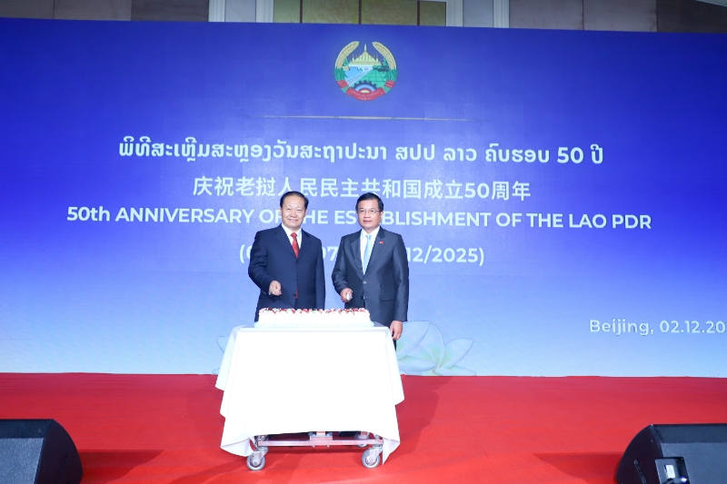 ສະຖານທູດເອກອັກຄະລັດຖະທູດ ແຫ່ງ ສປປ ລາວ ປະຈໍາ ສປ ຈີນ ຈັດງານລ້ຽງສະເຫຼີມ ສະຫຼອງວັນສະຖາປະນາ ສປປ ລາວ ຄົບຮອບ 50 ປີ (02/12/1975-02/12/2025) ໃນຕອນຄໍ່າວັນທີ 2 ທັນວາ 2025 ຢູ່ນະຄອນຫຼວງປັກກິ່ງ ໂດຍມີ ທ່ານ ເຜິງຊິ່ນຮວາ ຮອງປະທານ ຄະນະ ປະຈຳສະພາປະຊາຊົນແຫ່ງຊາດຈີນ, ທ່ານ ສົມພອນ ສີຈະເລີນ ເອກອັກຄະລັດຖະທູດ ແຫ່ງ ສປປ ລາວ ປະຈຳ ສປ ຈີນ, ບັນດາທູຕານຸທູດປະຈໍາ ສປ ຈີນ ແລະ ແຂກຖືກເຊີນ ເຂົ້າຮ່ວມ.