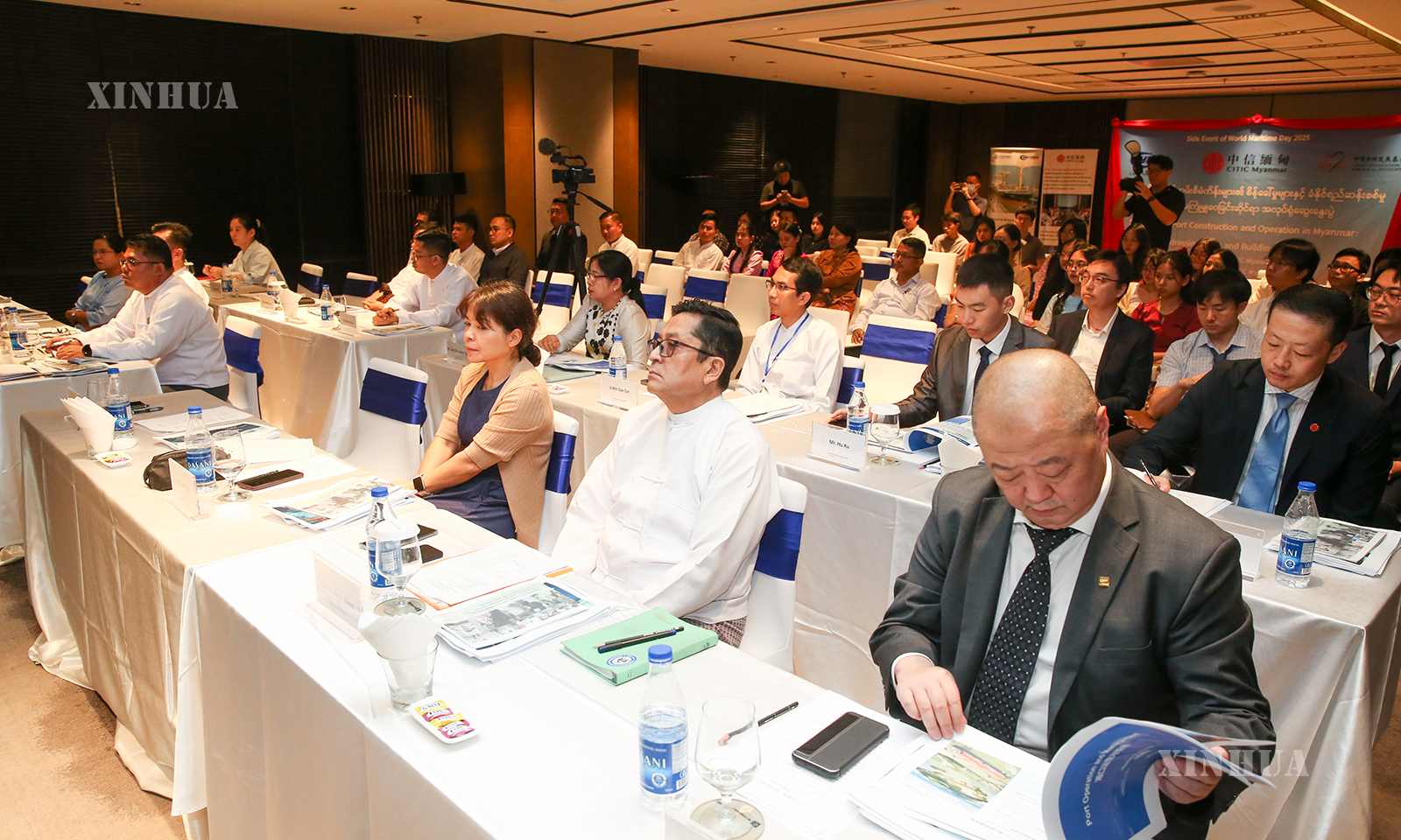မြန်မာနိုင်ငံ ရန်ကုန်မြို့တွင် ၂၀၂၅ ခုနှစ် စက်တင်ဘာ ၂၅ ရက်က “မြန်မာနိုင်ငံ ဆိပ်ကမ်းစီမံကိန်းများ၏ စိန်ခေါ်မှုများနှင့် ခံနိုင်ရည်ဆန်းစစ်မှု အတွေ့အကြုံမျှဝေခြင်းဆိုင်ရာ အလုပ်ရုံဆွေးနွေးပွဲ” ကျင်းပနေစဉ် (ဆင်ဟွာ)
