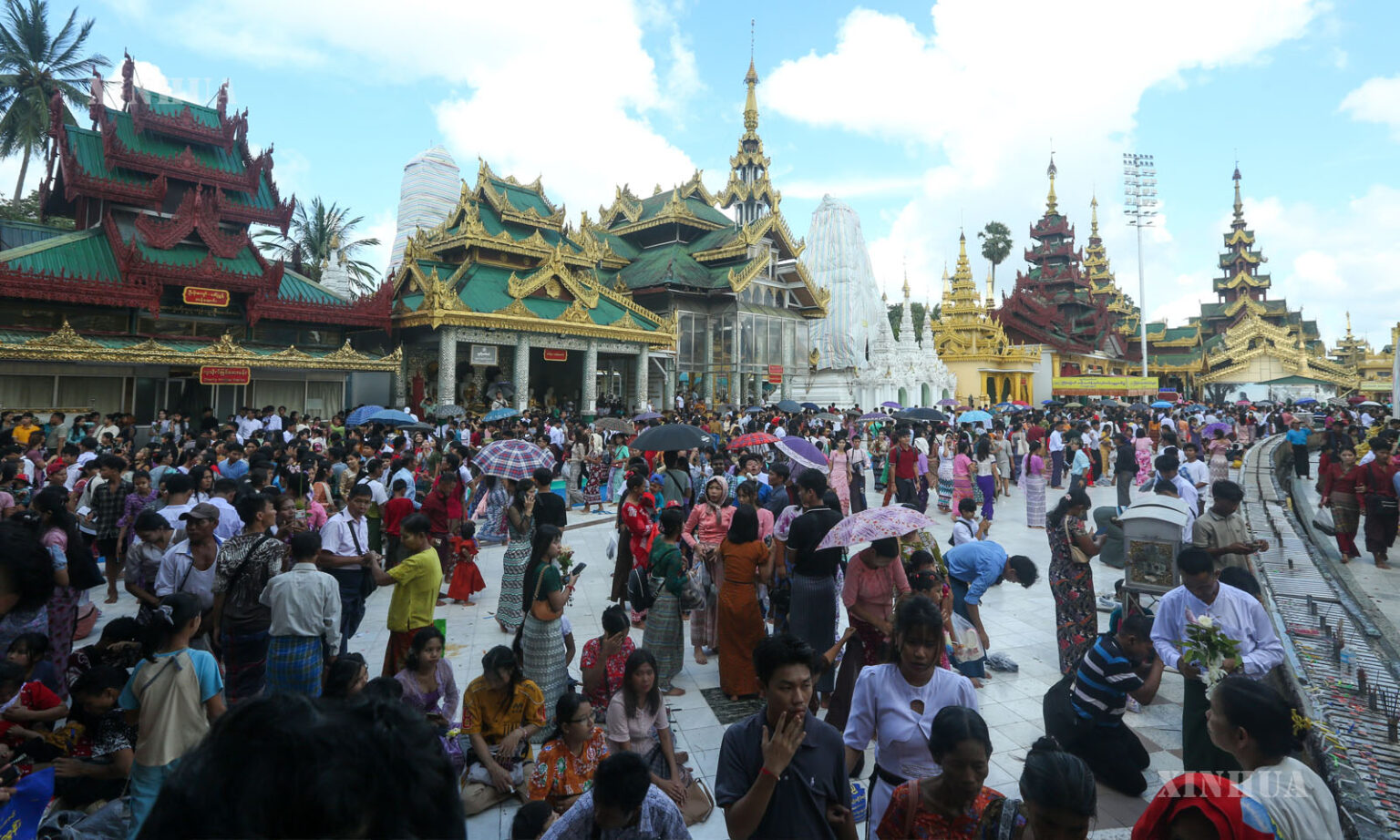 မြန်မာနိုင်ငံ ရန်ကုန်မြို့ ရွှေတိဂုံစေတီတော်သို့ သီတင်းကျွတ်လပြည့်နေ့ ဘုရားဖူးများ လာရောက်ဖူးမြော်ကြမှု မြင်ကွင်းများ