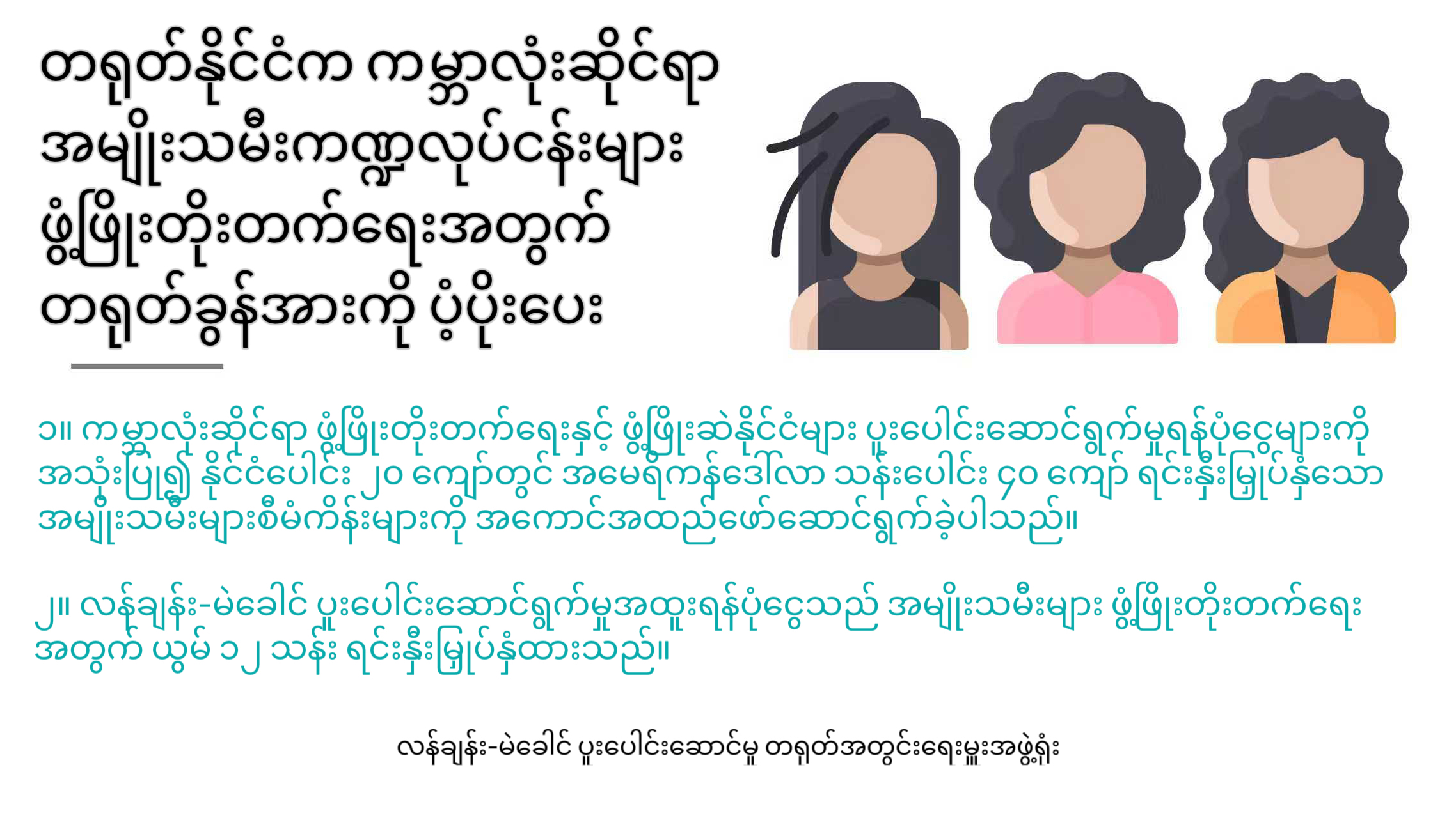 တရုတ်နိုင်ငံက ကမ္ဘာလုံးဆိုင်ရာ အမျိုးသမီးကဏ္ဍလုပ်ငန်းများ ဖွံ့ဖြိုးတိုးတက်ရေးအတွက် တရုတ်ခွန်အားကို ပံ့ပိုးပေး