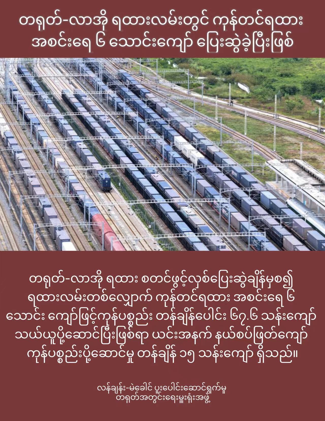 တရုတ်-လာအို ရထားလမ်းတွင် ကုန်တင်ရထား အစင်းရေ ၆ သောင်းကျော် ပြေးဆွဲခဲ့ပြီးဖြစ်