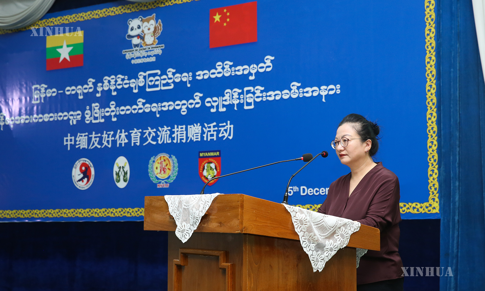တရုတ်-မြန်မာ နှစ်နိုင်ငံချစ်ကြည်ရေး အထိမ်းအမှတ် မြန်မာ့အားကစားကဏ္ဍ ဖွံဖြိုးတိုးတက်ရေးအတွက် မြန်မာနိုင်ငံဆိုင်ရာ တရုတ်ပြည်သူ့သမ္မတနိုင်ငံသံရုံး၏ လှူဒါန်းခြင်းအခမ်းအနားကို ဒီဇင်ဘာ ၅ ရက်က မြန်မာနိုင်ငံ ရန်ကုန်မြို့တွင် ပြုလုပ်ခဲ့သည်။