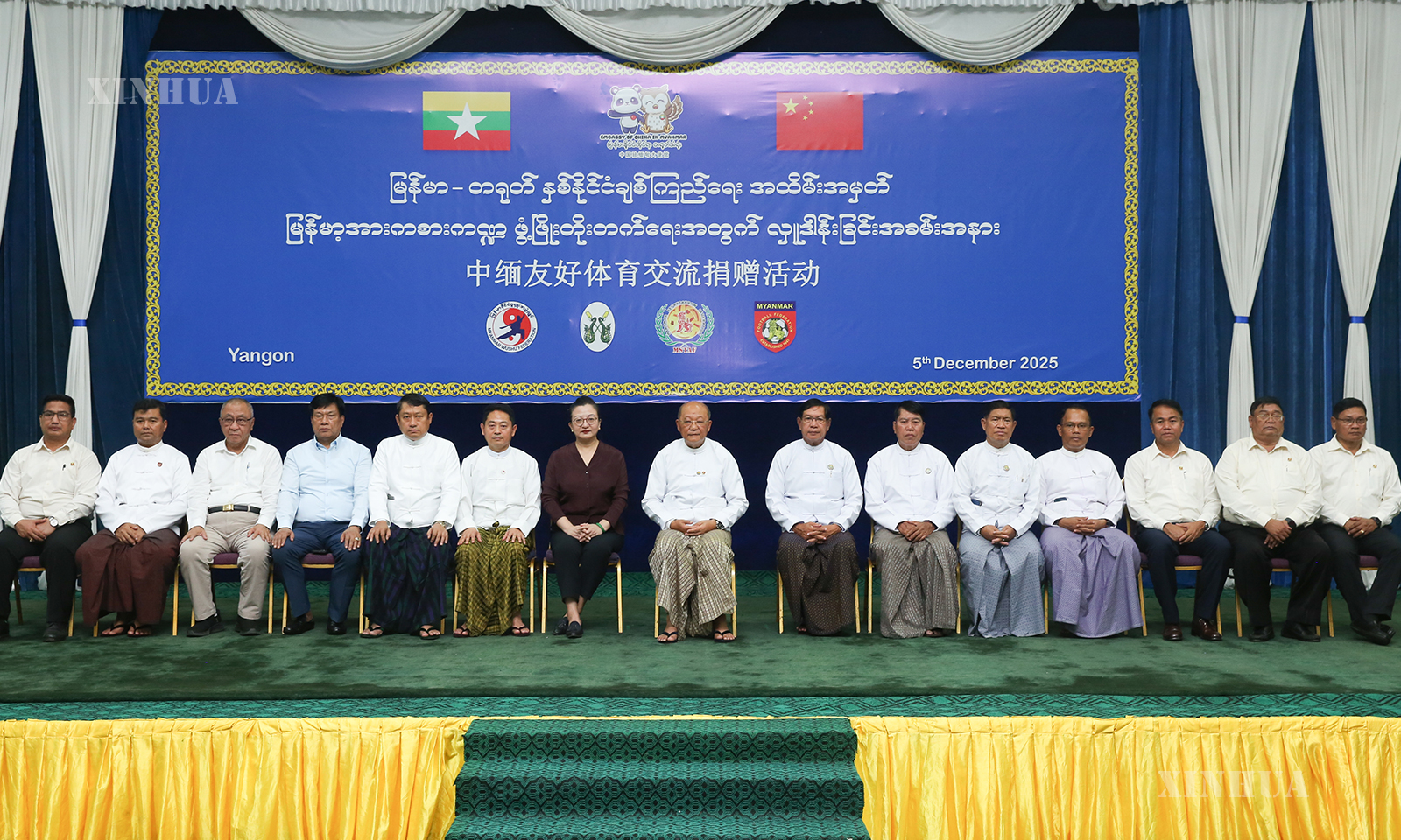 မြန်မာနိုင်ငံ ရန်ကုန်မြို့တွင် ဒီဇင်ဘာ ၅ ရက်က ပြုလုပ်ခဲ့သည့် တရုတ်-မြန်မာ နှစ်နိုင်ငံချစ်ကြည်ရေး အထိမ်းအမှတ် မြန်မာ့အားကစားကဏ္ဍ ဖွံဖြိုးတိုးတက်ရေးအတွက် လှူဒါန်းခြင်းအခမ်းအနား မြင်ကွင်းများ (ဆင်ဟွာ)
