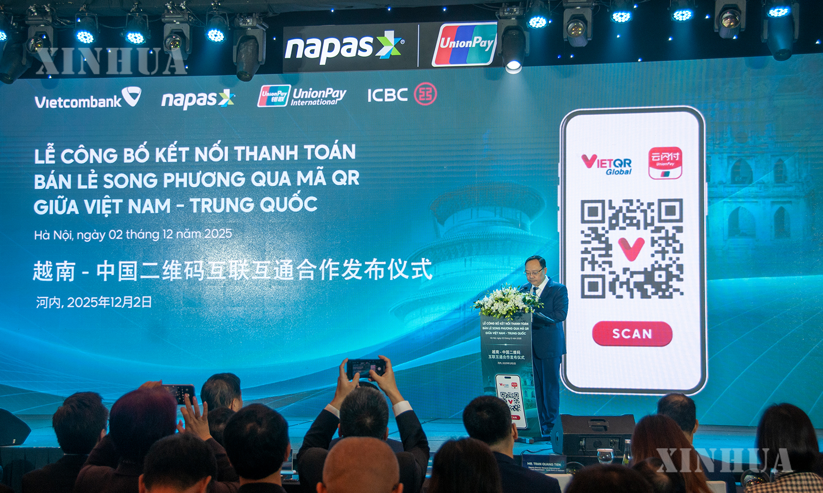 ဗီယက်နမ်နိုင်ငံ ဟနွိုင်းမြို့တွင် ကျင်းပသည့် တရုတ်-ဗီယက်နမ် QR Code အပြန်အလှန်ချိတ်ဆက် ငွေပေးချေခြင်းစနစ် ပူးပေါင်းဆောင်ရွက်မှု စတင်ခြင်းအခမ်းအနားအား ၂၀၂၅ ခုနှစ် ဒီဇင်ဘာ ၂ ရက်က တွေ့ရစဉ် (ဆင်ဟွာ)