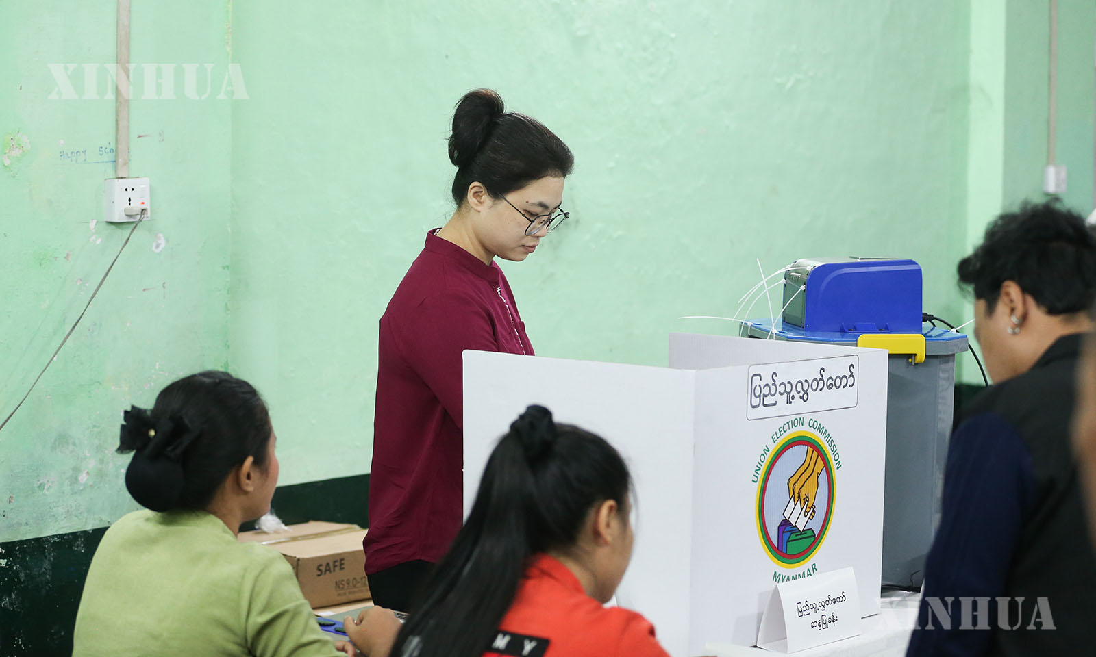 မြန်မာနိုင်ငံ ရန်ကုန်မြို့တွင် ၂၀၂၅ ခုနှစ် ပါတီစုံဒီမိုကရေစီအထွေထွေရွေးကောက်ပွဲ အပိုင်း (၁) ကျင်းပမှုမြင်ကွင်းများကို ဒီဇင်ဘာ ၂၈ ရက်က တွေ့ရစဉ် (ဆင်ဟွာ)