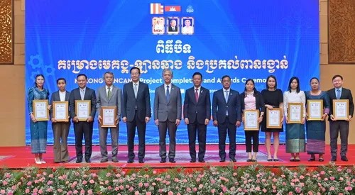 လန်ချန်း-မဲခေါင် ပူးပေါင်းဆောင်ရွက်မှု သီးသန့်ရန်ပုံငွေဖြင့် ထောက်ပံသော ”အလတ်စားနှင့် အသေးစား စီးပွားရေးလုပ်ငန်းများ ထုတ်လုပ်မှုစွမ်းအားနှင့် နည်းပညာ ပူးပေါင်းဆောင်ရွက်မှုအား တိုးမြှင့်ခြင်းဖြင့် လန်ချန်း-မဲခေါင်နိုင်ငံများ၏ စက်မှုလုပ်ငန်း ၄.၀ အကောင်အထည်ဖော်ရန် ထောက်ပံ့ခြင်း” ဟူသောစီမံကိန်းကို ခြုံငုံသုံးသပ်သောအစည်းအဝေးကို ၂၀၂၅ ခုနှစ် ဒီဇင်ဘာလ ၁၈ ရက်နေ့တွင် ဖနွမ်းပင်မြို့တွင် ကျင့်ပခဲ့သည်။ ကမ္ဘောဒီးယားနိုင်ငံဆိုင်ရာ တရုတ်သံအမတ်ကြီး Wang Wenbin၊ ကမ္ဘောဒီးယားနိုင်ငံ စက်မှုနှင့် သိပ္ပံနည်းပညာအသစ်တီထွင်ရေးဝန်ကြီးဌာန ဝန်ကြီး ဟန်ဝမ်တီး၊ နိုင်ငံခြားရေးနှင့် နိုင်ငံတကာပူးပေါင်းဆောင်ရွက်ရေးဝန်ကြီးဌာနက အတွင်းဝန် မြင်ကျင်ရှင်တို့သည် အထက်ပါအစည်းအဝေးသို့ ပါဝင်တက်ရောက်၍ မိန့်ခွန်းစကား ပြောကြားသည်။