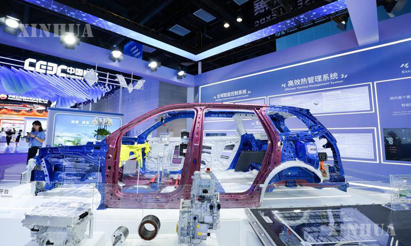တရုတ်နိုင်ငံ တောင်ပိုင်း ကွမ်ရှီးကျွမ့် ကိုယ်ပိုင်အုပ်ချုပ်ခွင့်ရဒေသ မြို့တော် နန်နင်းရှိ နန်နင်း နိုင်ငံတကာကွန်ဗင်းရှင်းနှင့် ပြပွဲစင်တာတွင် လျှပ်စစ်ကားပြခန်းကို ၂၀၂၅ ခုနှစ် စက်တင်ဘာ ၁၉ ရက်က တွေ့ရစဉ် (ဆင်ဟွာ)
