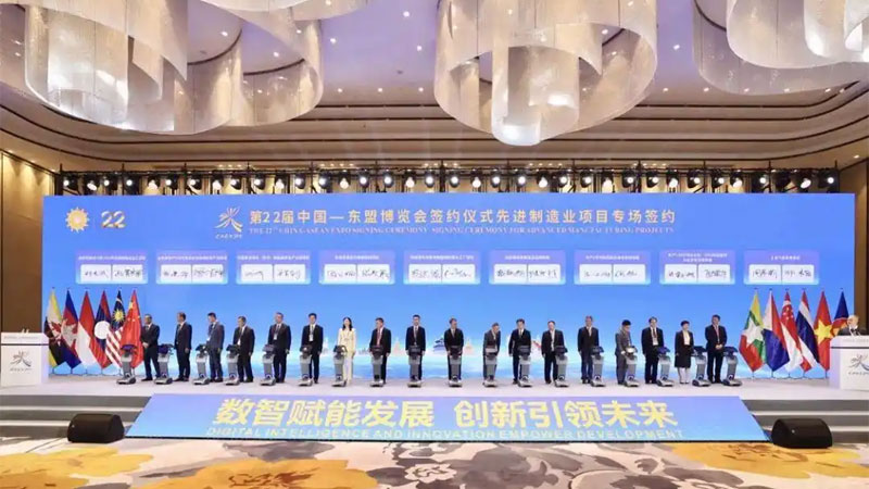 วันที่ 18 กันยายน มีการจัดพิธีลงนามความร่วมมือในงานมหกรรมจีน-อาเซียน (China-ASEAN Expo) ครั้งที่ 22 ที่เมืองหนานหนิง เขตกว่างซีจ้วง โดยมีการเซ็นสัญญารวม 155 รายการ รวมถึงโครงการทางอุตสาหกรรม 94 รายการ โครงการเศรษฐกิจการค้าระหว่างประเทศ 17 รายการ และโครงการ“ปัญญาประดิษฐ์+” สนับสนุนแขนงงานต่างๆ 44 รายการ
