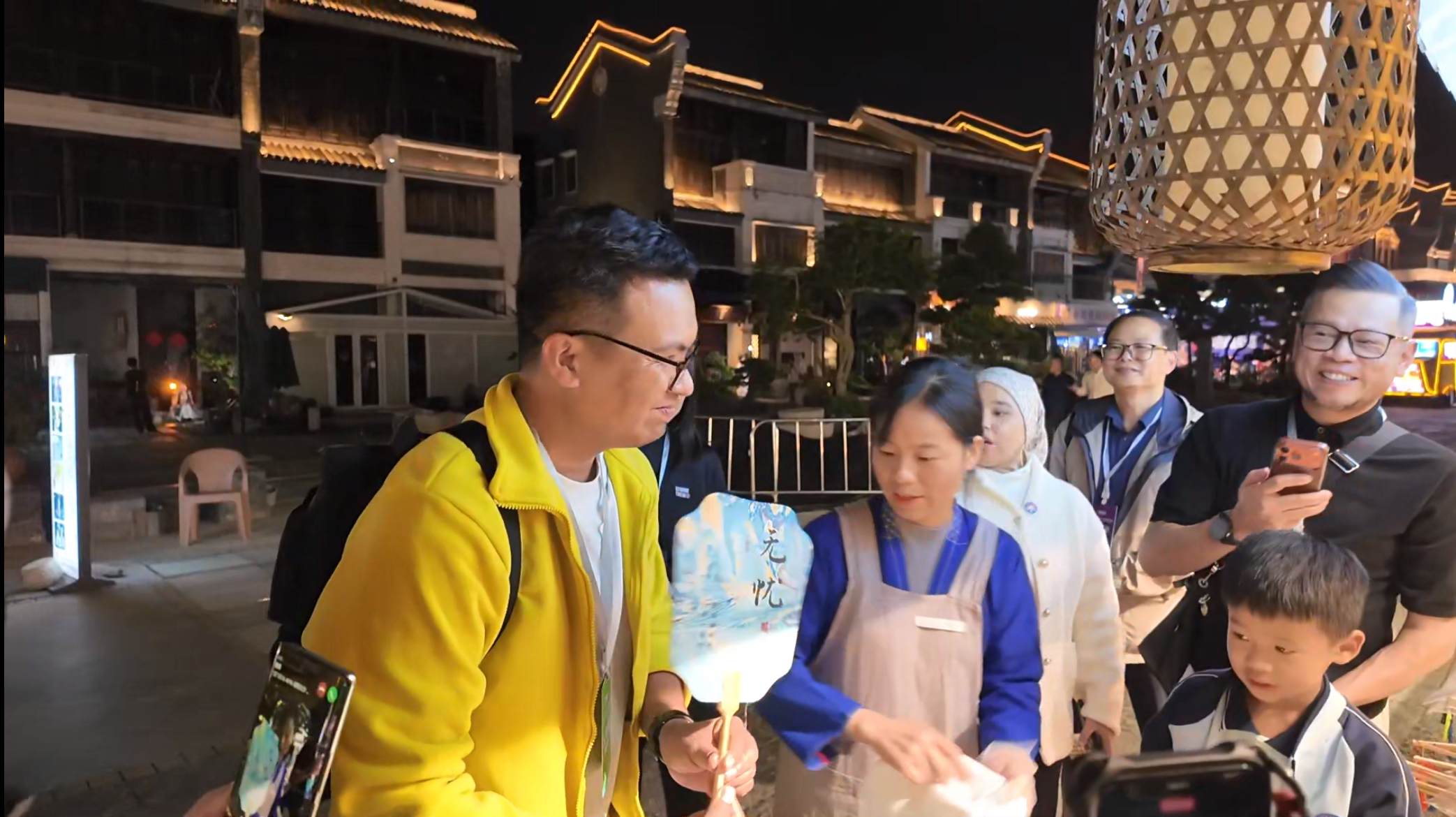 ช่วงเย็นวันเดียวกัน คณะผู้สื่อข่าวไปยังตำบลโบราณเหยาปู้ เที่ยวตลาดกลางคืน ชิมอาหารพื้นเมืองของหลิ่วโจว และอาหารที่ปรับปรุงคิดค้นใหม่ ต่างบันทึกภาพระหว่างร้านค้าต่าง ๆ ทั้งอาหารการกิน หัตถกรรม มรดกวัฒนธรรมที่จับต้องไม่ได้ สัมผัสมนต์เสน่ห์วัฒนธรรมและประเพณีท้องถิ่น