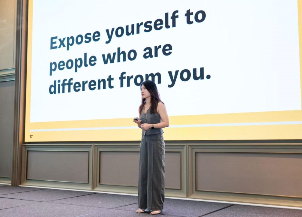 Ms. Chu Yaqi ตัวแทนเยาวชนผู้ปฏิบัติด้านนวัตกรรมเพื่อความยั่งยืนจากประเทศจีน ได้แบ่งปันประสบการณ์การเติบโตของตนเอง ตั้งแต่การเป็นครูอาสาในชนบทจนถึงการอุทิศตนในภาคสาธารณะ พร้อมทั้งถ่ายทอดมุมมองและข้อคิดเชิงลึก โดยเสนอแนวคิดว่า“การพัฒนาวิธีแก้ปัญหาที่แท้จริง เริ่มจากการพัฒนาศักยภาพของคน”