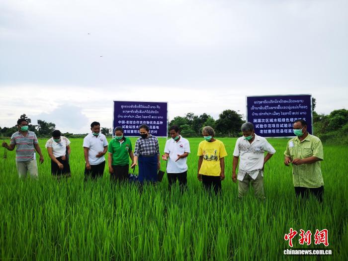 สถานีทดลองพันธุ์พืชชั้นดีจีน (กวางสี) - ลาว ขณะเผยแพร่เทคโนโลยีการเพิ่มผลผลิตข้าวที่เป็นมิตรต่อสิ่งแวดล้อมในประเทศลาว