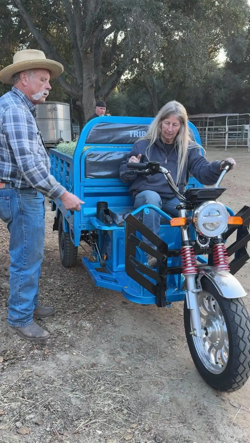 Cuối năm 2023, một đoạn video bất ngờ gây bão mạng xã hội: Một cô gái Trung Quốc tặng bố chồng người Mỹ một món quà là chiếc xe điện ba bánh. Ông bố chồng người Mỹ lái chiếc xe này trên thị trấn, chiếc xe có ngoại hình độc đáo lại còn kèm thêm giọng nói nhắc nhở“xin chú ý! lùi xe”. Đoạn video này đã nhận được rất nhiều lượt xem.
