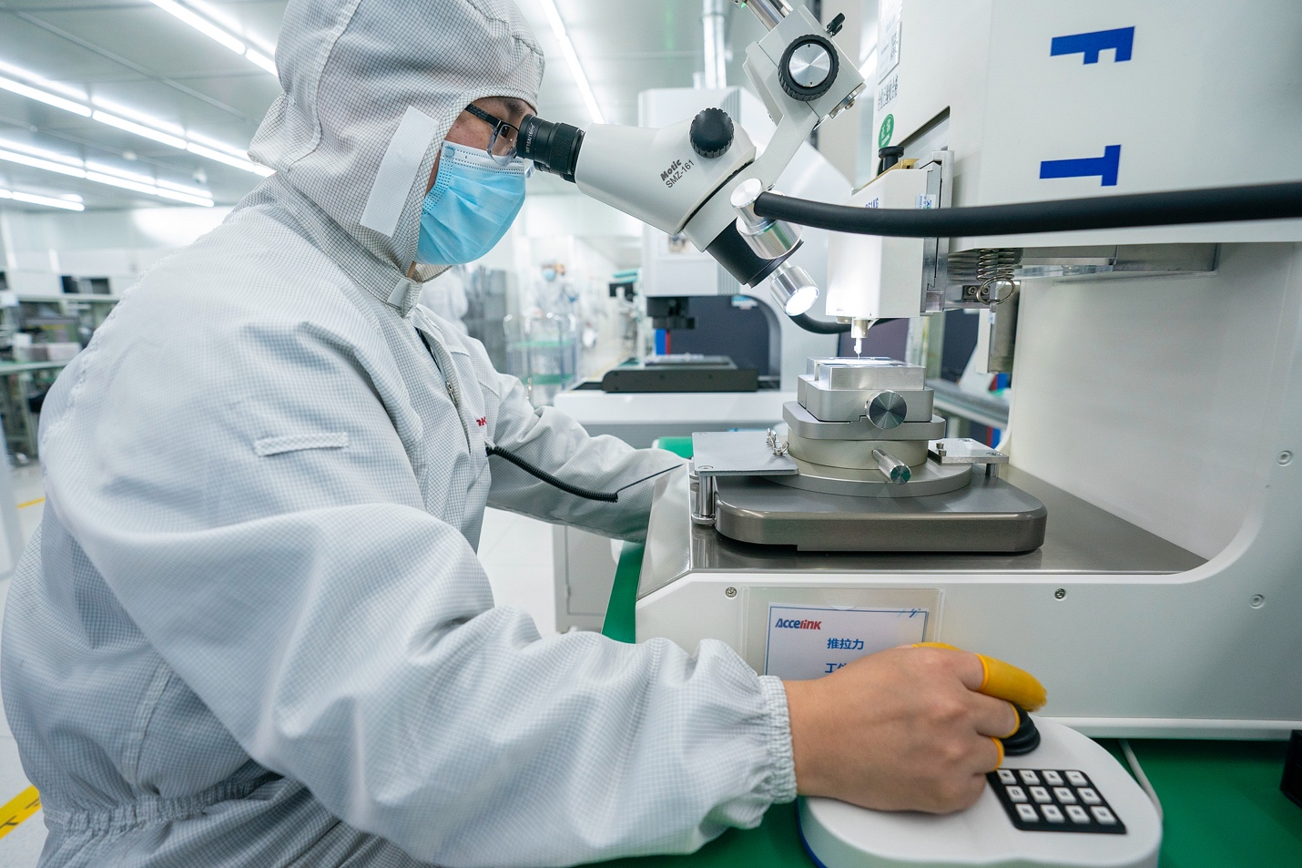 Sản xuất và thử nghiệm các mô-đun quang tốc độ cao cho các trung tâm dữ liệu AI, Vũ Hán, Trung Quốc, ngày 18/12/2024 (Ảnh: CGTN)