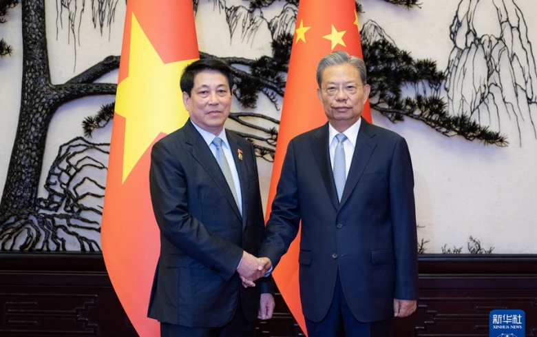 Ủy viên trưởng Nhân đại toàn quốc Trung Quốc Triệu Lạc Tế tiếp Chủ tịch nước Việt Nam Lương Cường